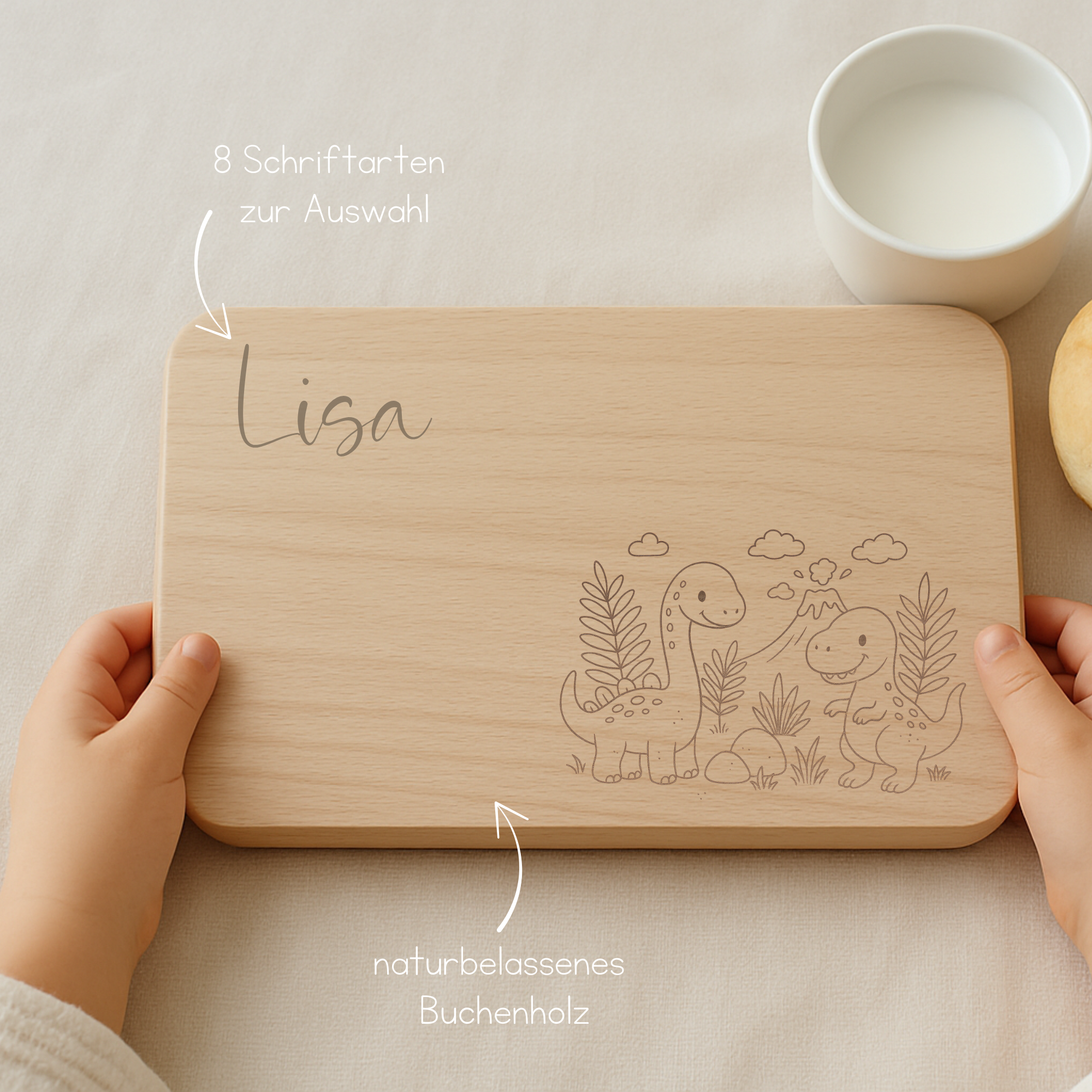 Frühstücksbrettchen Dinos– personalisierbar mit Name