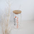 Wähle zwischen dem hochwertigen Glas mit Bambusdeckel (inkl. Gravur-Option) oder der leichten, bruchsicheren Kunststoffvariante – beide Versionen kommen mit passendem Strohhalm.